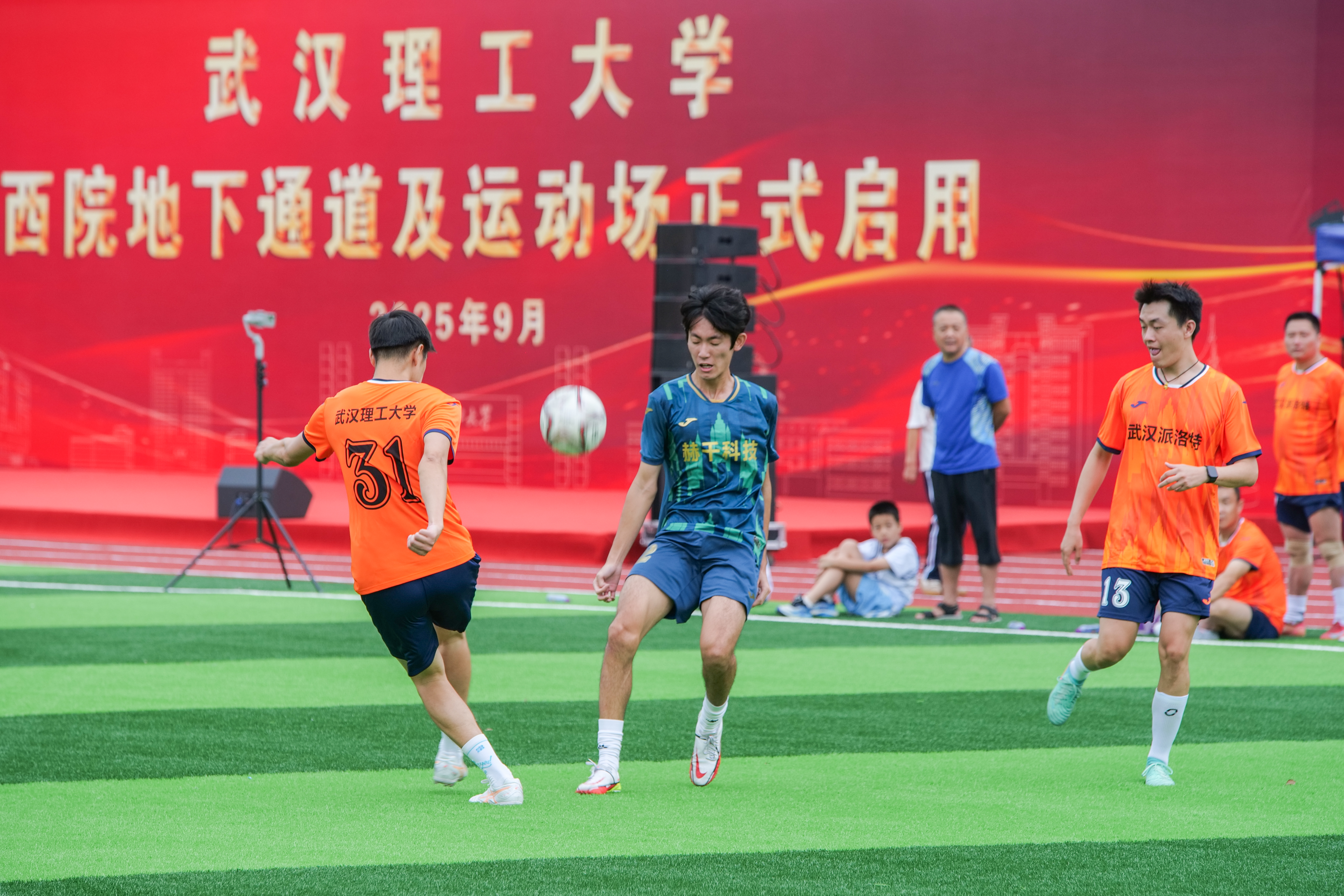 2025.9.6学校西院地下通道及运动场正式启用,学校参加“汉超”的师生代表与校友代表开启足球狂欢